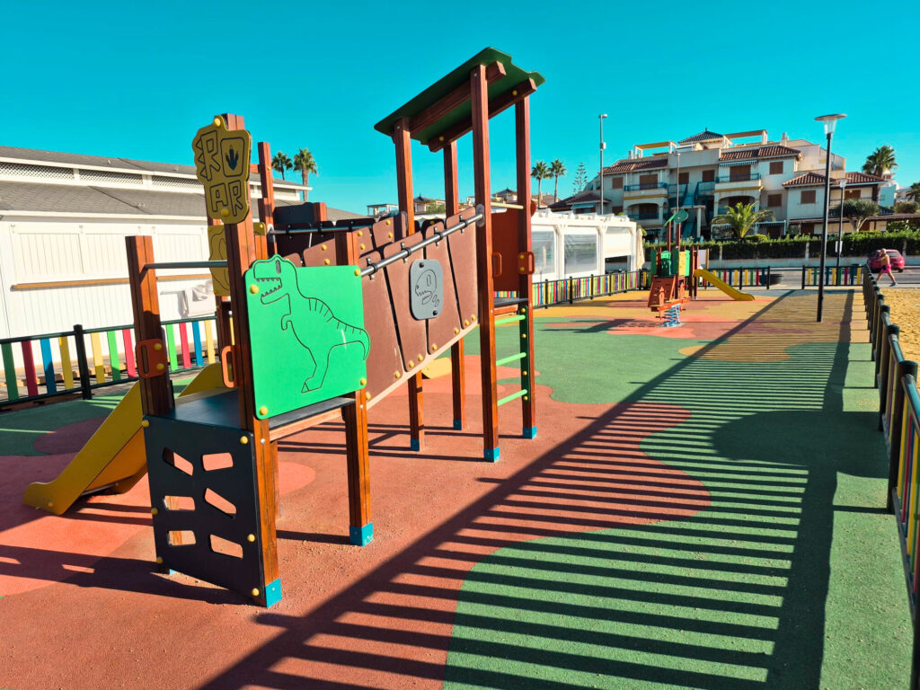 • Zona 3-6 años: columpios con asiento de seguridad, toboganes medianos, juegos de trepa simples.