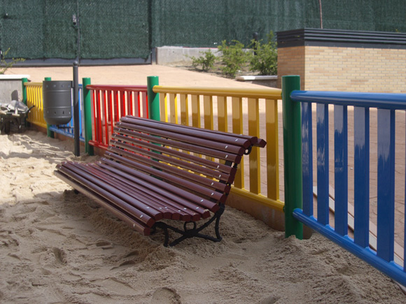 El banco Romántico es un clásico dentro del mobiliario urbano, también denominado banco de tablillas, está fabricado con pies de fundición y listones de madera tropical con tratamientos protectores. Ideal para plazas de Ayuntamientos, colegios y comunidades de propietarios.
